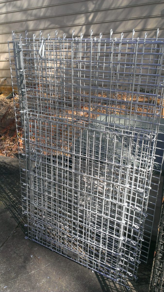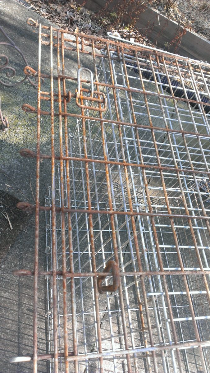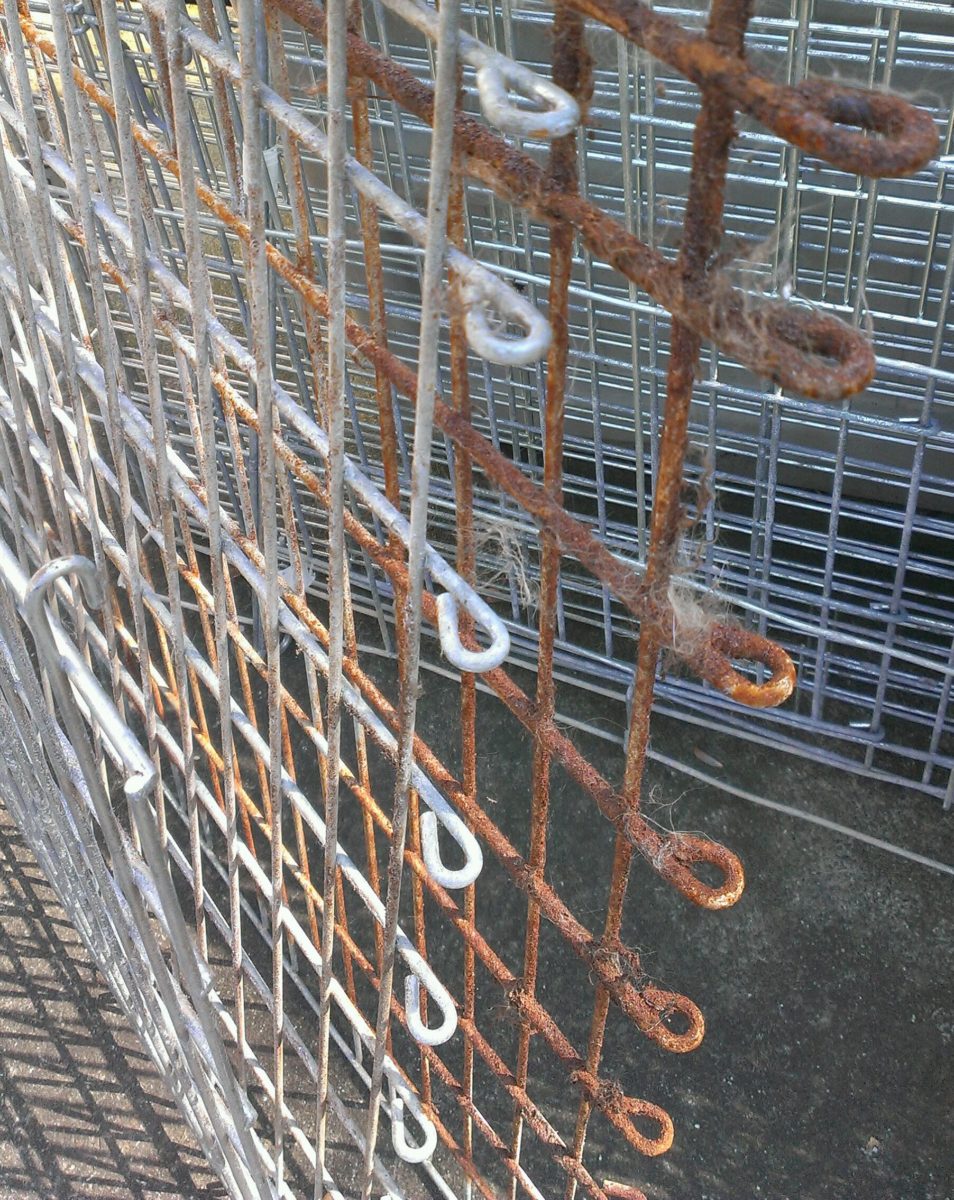 We got a few crates donated that have seen better days. A little banged up, rusted and bent…meh, who cares? HUHA put some elbow grease into a pair of pliers, a sander, wire brush and some Rust-oleum non-toxic paint!
