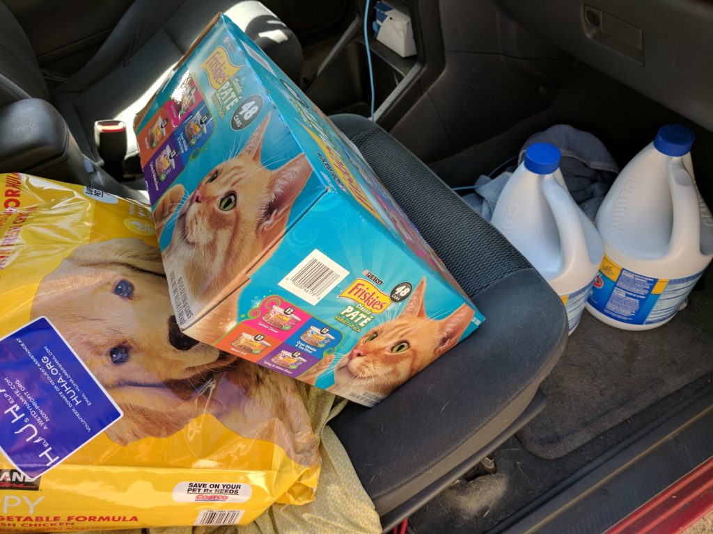 Yesterday, HUHA stopped off at Petco to pick up some dog food for our personal pups. While we were there we brought a bag of puppy food, 2 jugs of Clorox bleach and a case of cat food to Cherokee Humane Society’s adoption event. #DonateHUHA