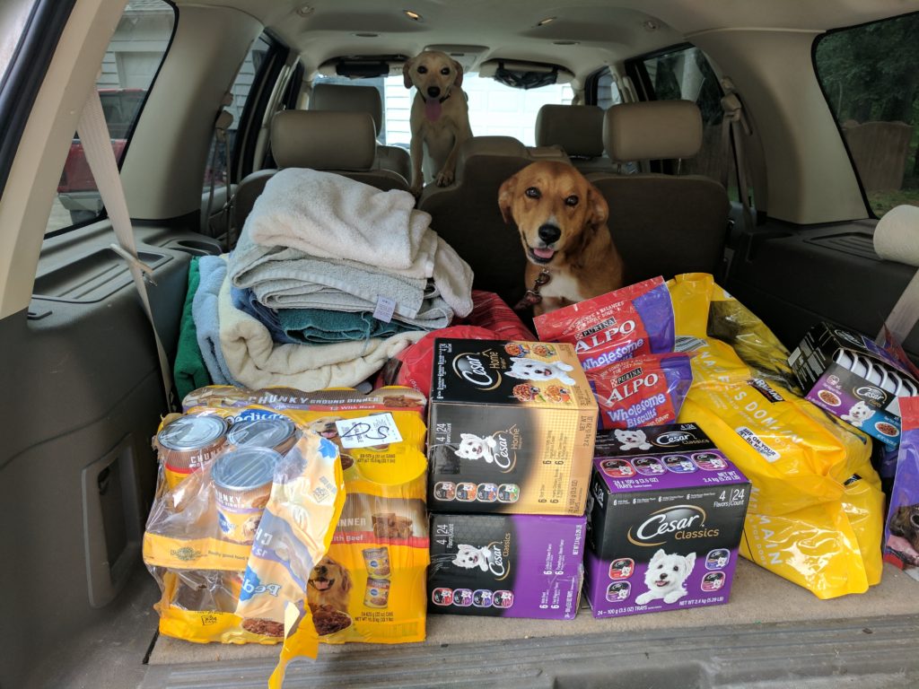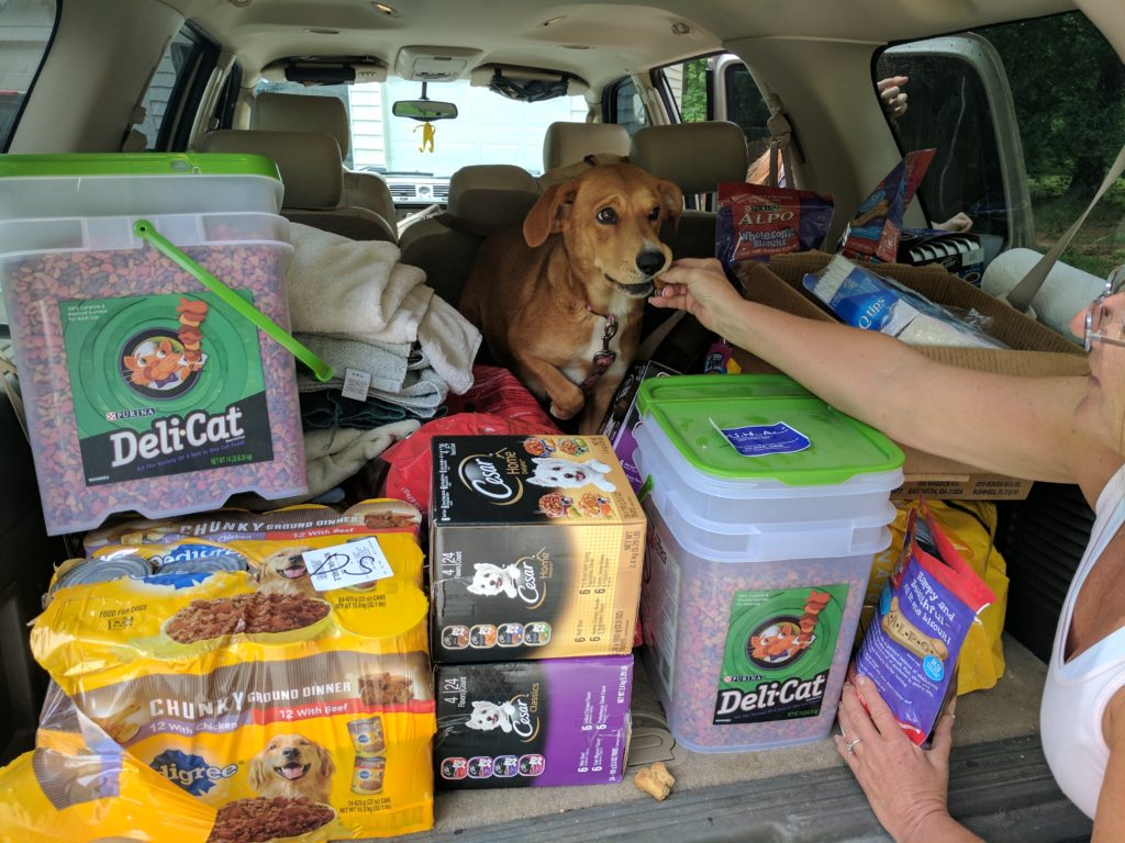 HUHA was visited by a foster friend of ours today. They had 2 momma pups full of puppies they recently took on. HUHA loaded them up with everything they needed plus some cat supplies for a cat foster near them and also a few items donated to us that are not rescue related. Every little bit helps! #DonateHUHA