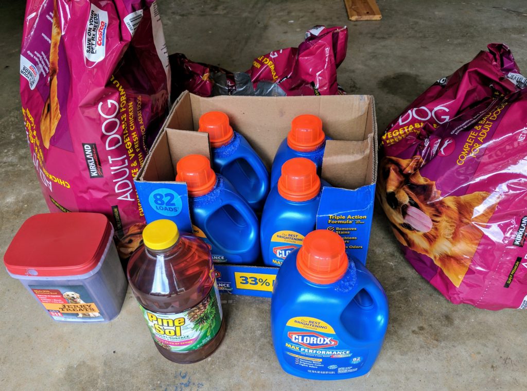 Today HUHA received 3 bags of food, a container of jerky treats, 1 bottle of Pine sol and 5 jugs of laundry detergent! #DonateHUHA