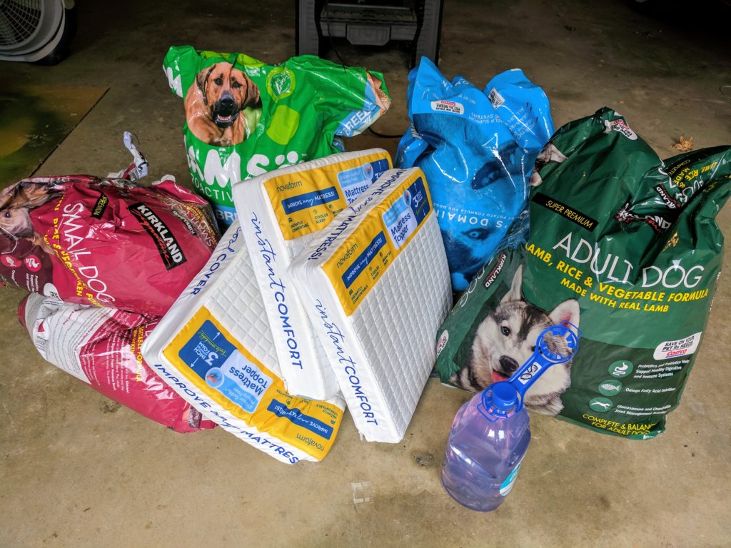 HUHA just received 4 bags of dog food, 3 memory foam pads, refill bottle of soap. #DonateHUHA