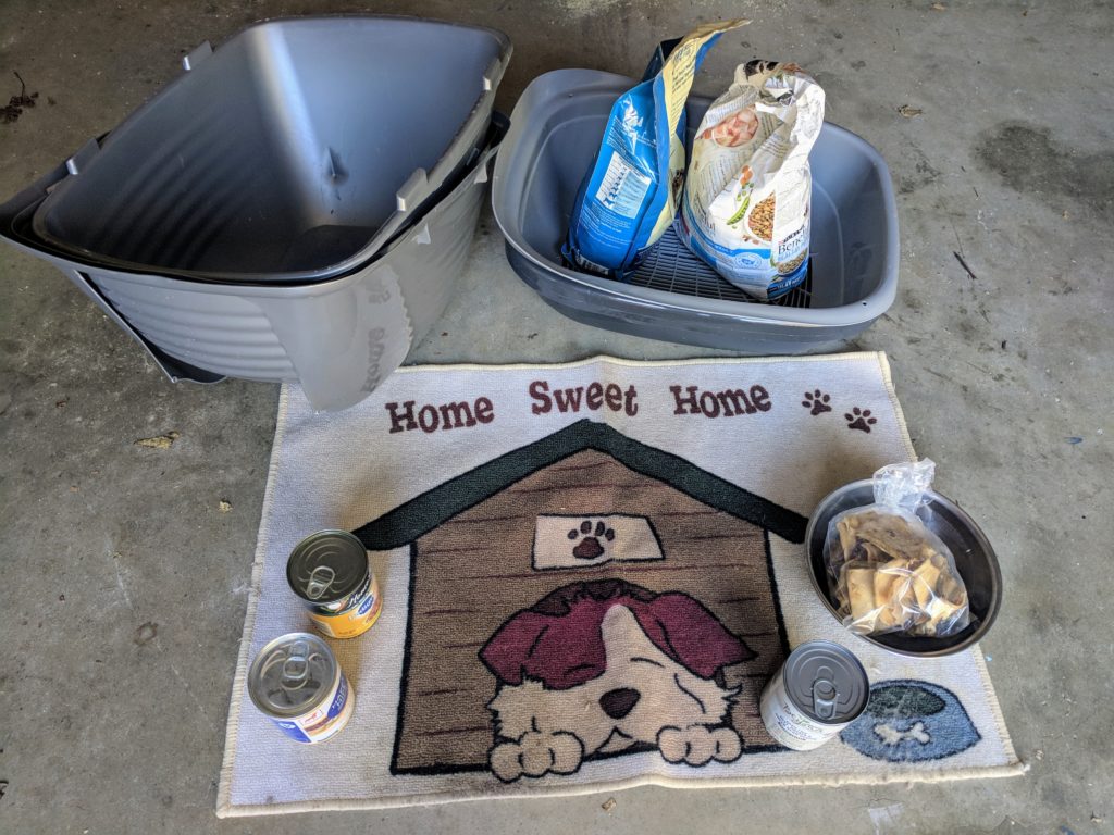Efi donated a cute rug, dog bowl, chew bones, 2 litter boxes, 2 bags of food and 3 cans of dog food! #DonateHUHA