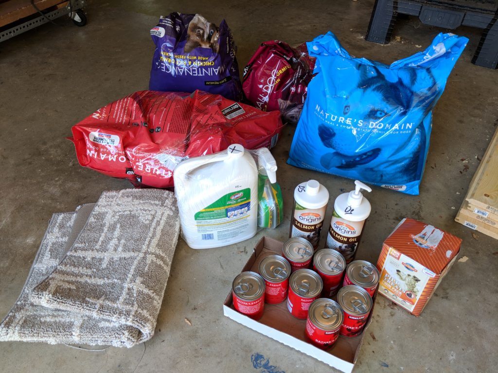 Today HUHA received 3 bags of dog food, 1 bag of cat food, 2 bottles supplements, Clorox cleaner, 8 cans of dog food, pill pockets and a rug. #DonateHUHA