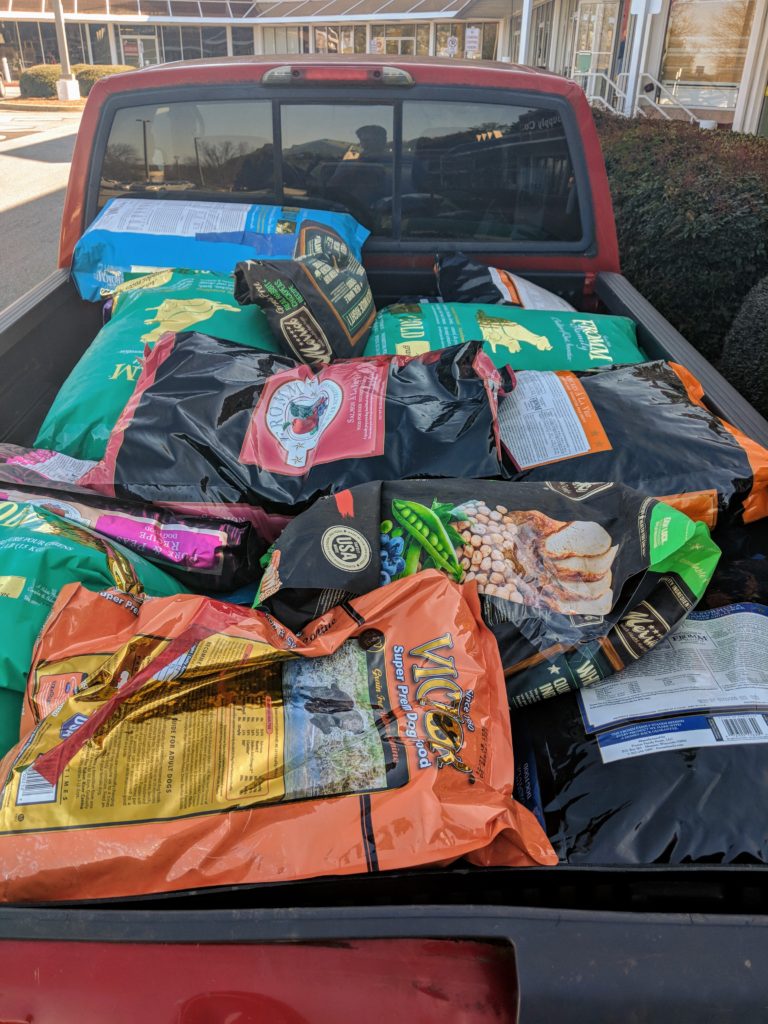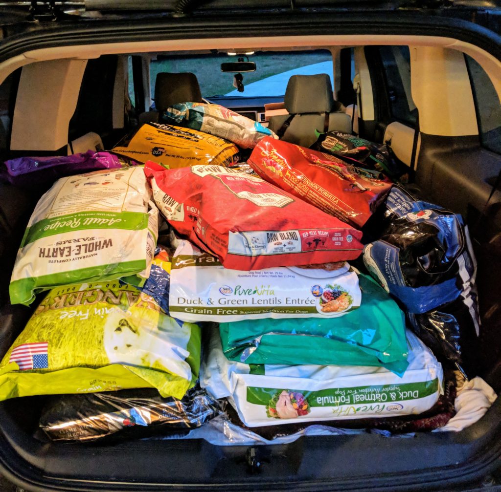 Top Dogs donated a full pallet of high quality dog food. It took us 2 trips to get it home 🙂