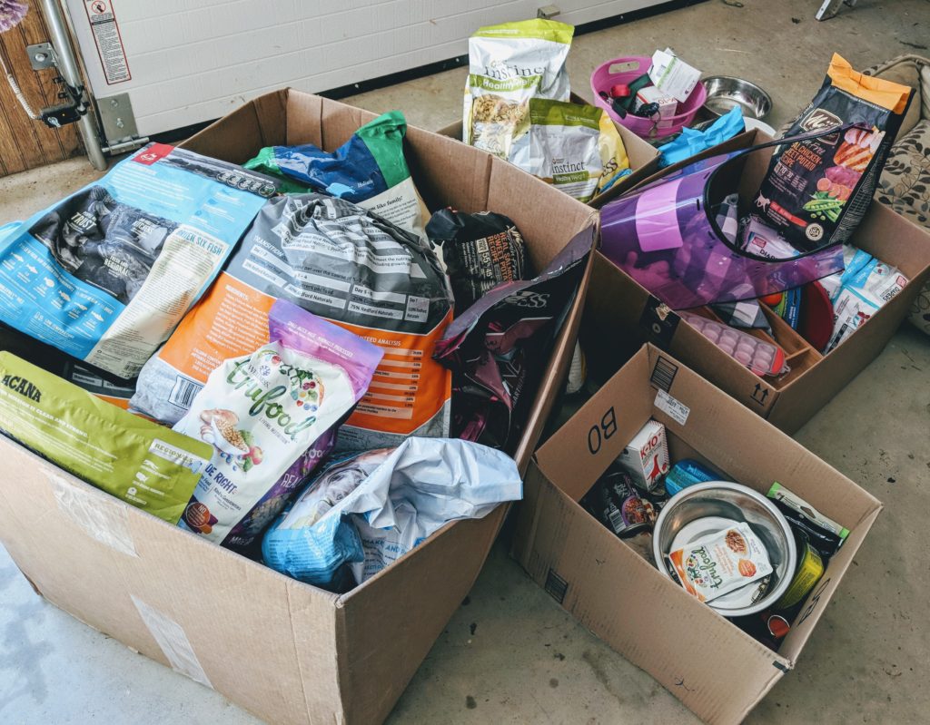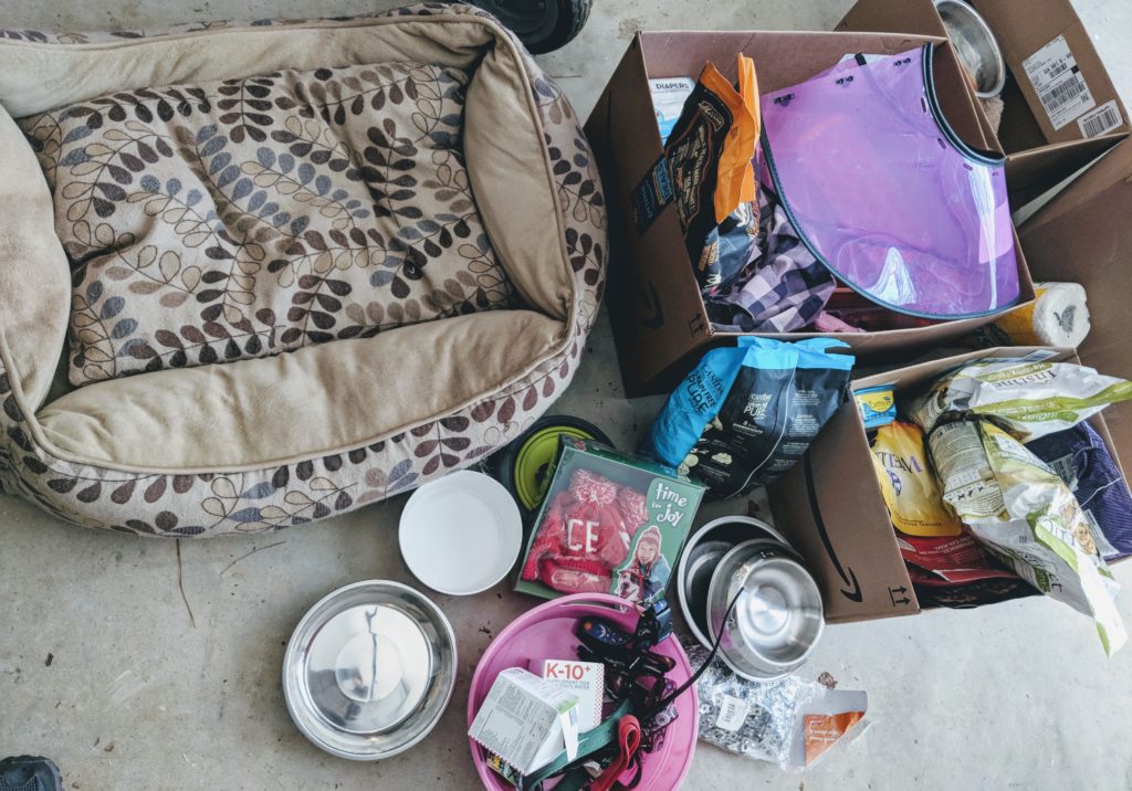 They donated so much stuff, multiple boxes filled with dog food, treats, bowls, leashes, collars, e-collar, bed and more!!!