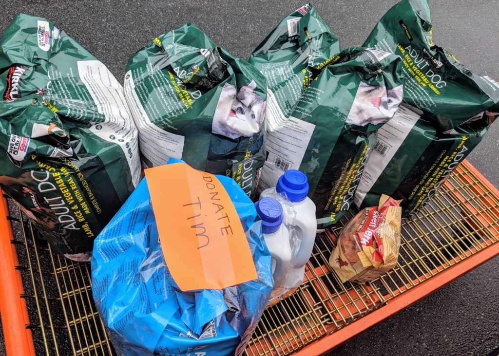 Today HUHA received 5 bags of dog food, 2 bottles of laundry detergent and a bag of treats. #DonateHUHA