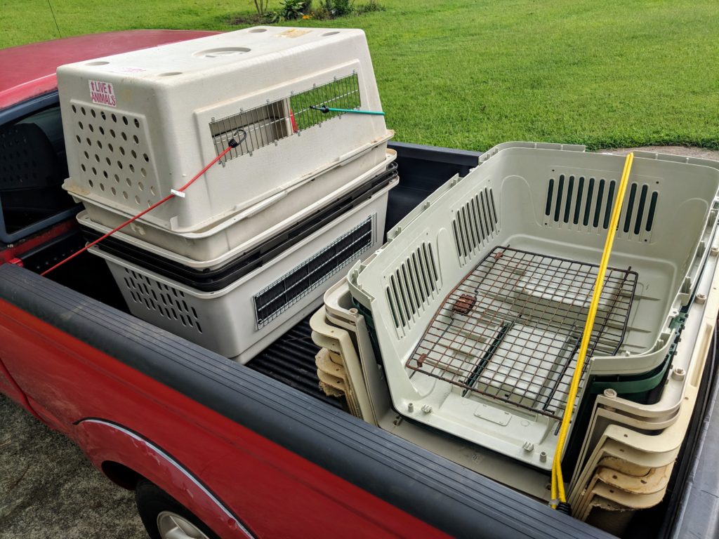 Today HUHA received a truck load of XL plastic carriers, 4 X-pens, 2 elevated bowl stands, a couple of metal flower pot stands ( can be used as food bowl stand ), XL metal tray for crate, box full of metal bowls. Thanks Barbara! #DonateHUHA