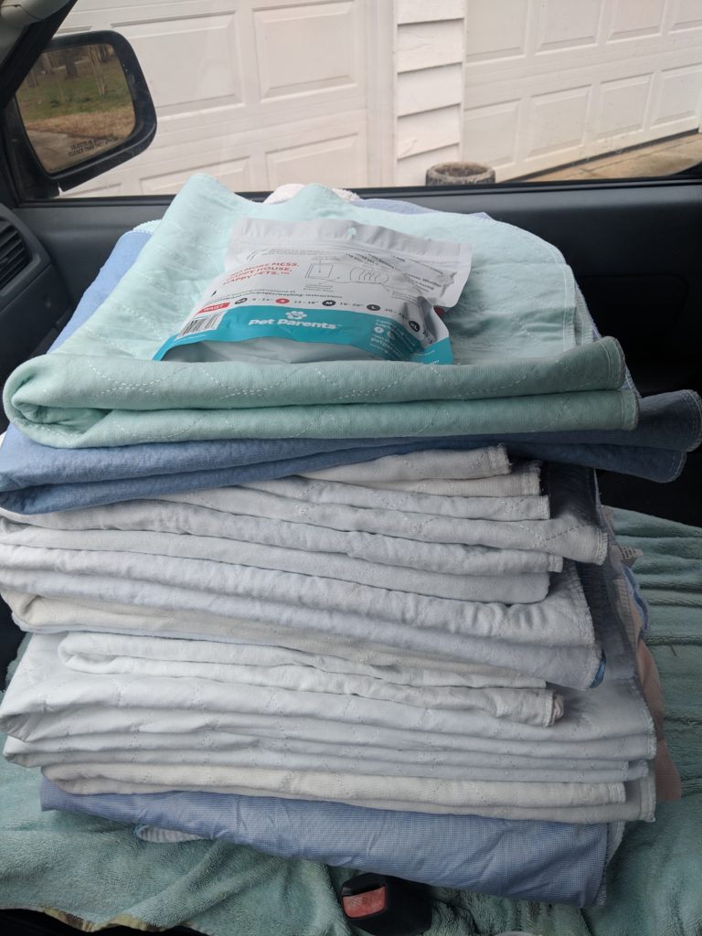 Yesterday HUHA donated a stack of washable pads and some belly bands to Cherokee County Humane Society. #DonateHUHA