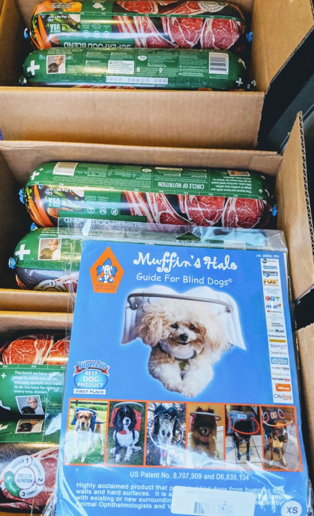 Yesterday HUHA donated 3 boxes of cold food, two bags of dry food and a Halo guide for blind dogs! Thanks to our donors, we are able to provide special needs items when needed. We were contacted about a blind and deaf pup that is bumping into everything so we ordered a Halo for the furry friend! #DonateHUHA