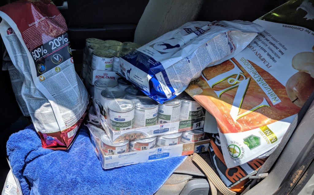 Today HUHA donated multiple cases of canned dog food, 8 bags of dog food and some collars to a volunteer with Life is Labs #DonateHUHA