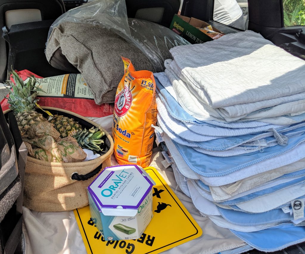 Today HUHA donated Two bags of dog food, treats, a leash, a collar, a harness, some produce, chew bones, Frontline, lysol, washable pads, baking soda, large dog bed, dental chews to a foster at Dog Days Rescue. #DonateHUHA