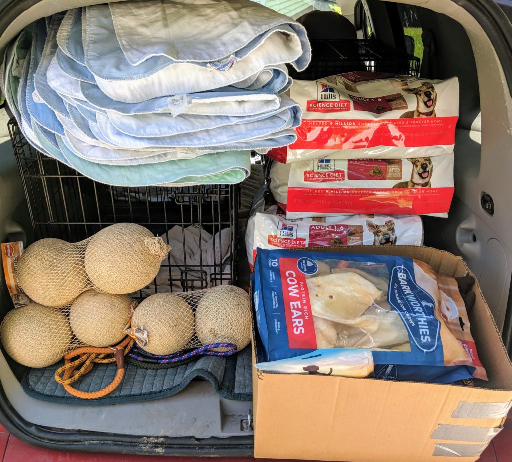 and HUHA donated to them: 6 Bags of dog food, cantaloupe, treats, chew bones, washable pads, and toys. #DonateHUHA
