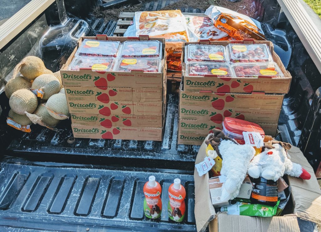 HUHA just donated dog food, produce, two bottles of itch relief shampoo, box of treats and toys, pro-biotics to our friends at CARES