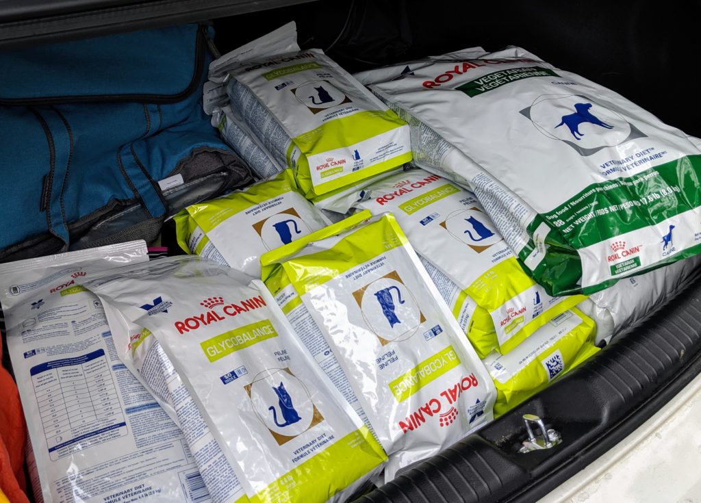 Today HUHA received 10 bags of Royal Canin. Some for cats and some for dogs. Vegetarian dog, Glycobalance for cats. #DonateHUHA