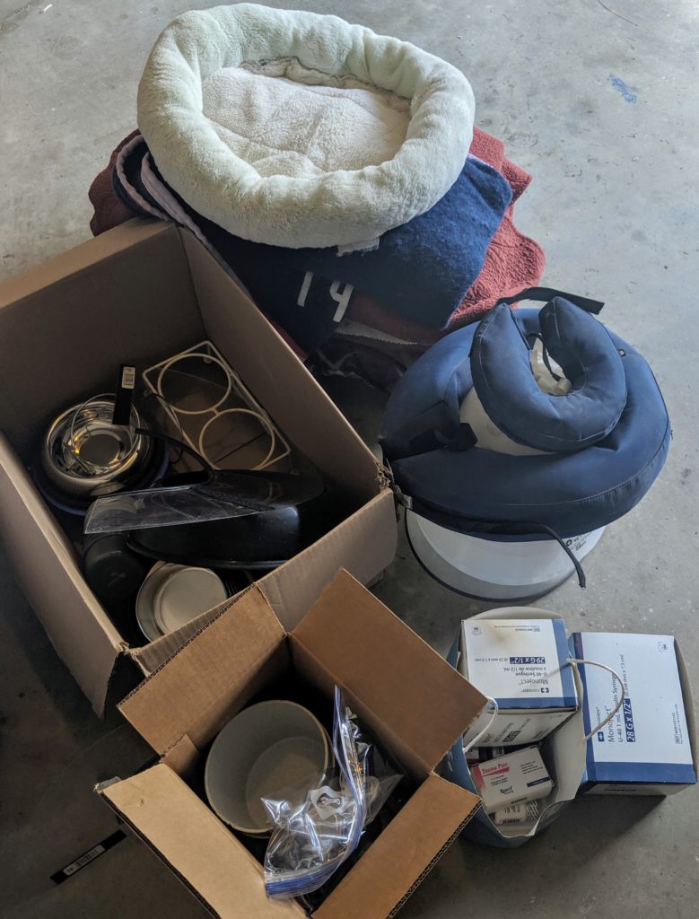 Yesterday our friends at CARES dropped off bowls, e-collars, misc medical supplies including 2 boxes of insulin syringes, pet beds and blankets and HUHA donated some produce and large bottles of water to them! #DonateHUHA