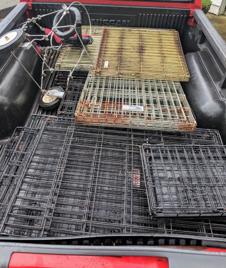 Yesterday HUHA received an anonymous donation of x-pens, crates, custom made wheelchair, canned food, toys, bowls and treats! The crates and pens range in a variety of sizes. Thanks! #DonateHUHA