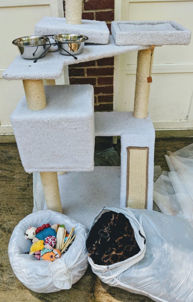 Today HUHA received a cat tree, bag of toys, chew bones, small bowl stand with bowls, and 2 pet beds! Thanks Larry or Benbrooke Ln! #DonateHUHA