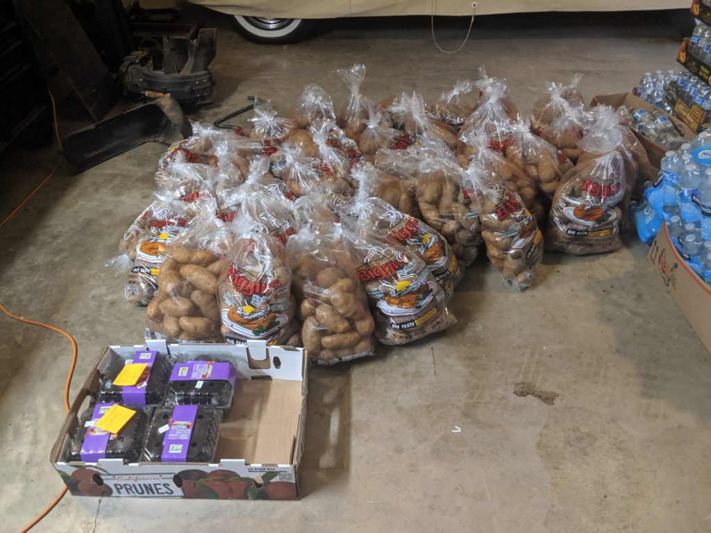 Today HUHA donated 18 bags of blankets, 45 bags potatoes, plums, mushrooms, pineapples and bottled water. #DonateHUHA