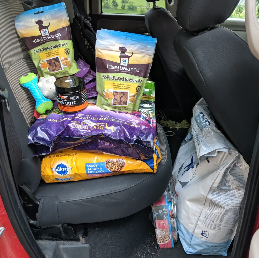 Next up we got a visit from Hickory Level Hound Rescue and they picked up for themselves and for Carroll County Animal Shelter some canned cat food, 6 bags of blankets, 3 bags Dog food, treats.