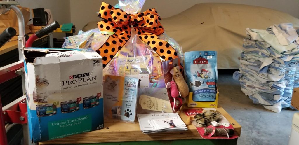 Yesterday HUHA donated a few items as well as provided a fundraising gift basket for an upcoming Meow-lo-ween event for Kitty Up Cat Rescue and Two Chicks Saving Cats. My wife Kristen occasionally donates her time and efforts to put together awesome gift baskets for fundraising auctions to help groups out.