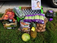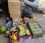 Today, our friend Jan stopped by to pick up potatoes, romaine lettuce, cucumbers, peaches, plums, melon, bottled water and facial towelettes for Papayago Rescue House and she donated some festive stockings and a bag! Thanks Jan! #DonateHUHA