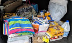 Today HUHA had the pleasure of meeting Michael and Chris of Southern Journey Animal Rescue and Transport. HUHA loves making new friends! You know us, we like to load you up! #DonateHUHA HUHA donated stack of towels stack of blankets box of wet food packs, 2 cases of canned food…