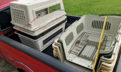 Today HUHA received a truck load of XL plastic carriers, 4 X-pens, 2 elevated bowl stands, a couple of metal flower pot stands ( can be used as food bowl stand ), XL metal tray for crate, box full of metal bowls. Thanks Barbara! #DonateHUHA