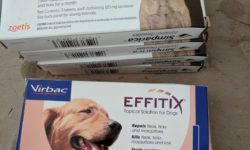 HUHA received some flea/tick preventative from Nick yesterday! Thanks Nick! #DonateHUHA HUHA received 4 packs of Simparica for 88.1-132 pound dogs and 1 pack of Effitix for 45-88.9 pound dogs.